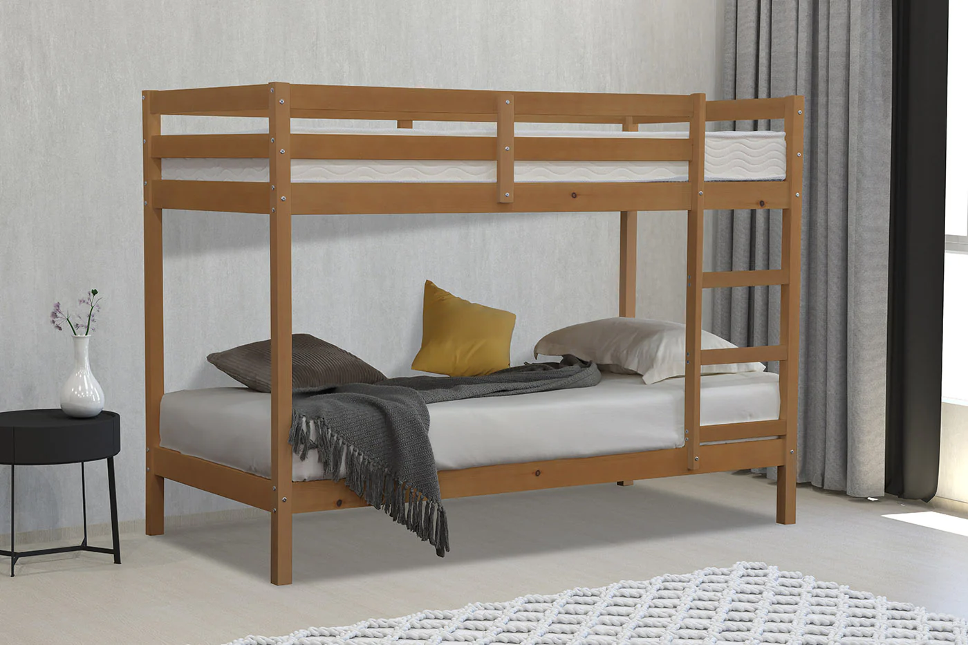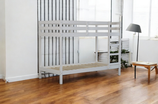Maximieren Sie Ihren Wohnraum mit diesem funktionalen Doppelstockbett aus massivem Holz für 90×190 cm Matratzen – die perfekte Lösung für Kinderzimmer, Jugendbereiche oder Gästebereiche. Das aus erstklassigem Kiefernholz gefertigte Etagenbett überzeugt durch seine solide und sichere Bauweise, die sowohl Beständigkeit als auch Sicherheit gewährleistet. Das zeitlose und stilvolle Design fügt sich harmonisch in jeden Wohnstil ein und bringt sowohl Gemütlichkeit als auch Zweckmäßigkeit in den Raum. Besonders geeignet für gemeinsam genutzte Räume, schafft dieses Bett zusätzlichen Platz, ohne dabei den Schlafkomfort zu beeinträchtigen. Sichern Sie sich jetzt diese durchdachte und zeitgemäße Wohnlösung für Ihr Zuhause! Unkomplizierte Montage inklusive.