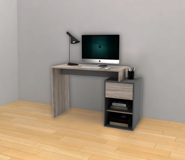 Für einen stets aufgeräumten und organisierten Arbeitsplatz sorgt die praktische Schublade, in der Sie alles Wichtige verstauen können. Zusätzlich schaffen die beiden offenen Fächer praktischen Stauraum, perfekt für Dekorationsartikel, Nachschlagewerke oder um elektronische Geräte griffbereit zu halten. Der Aufbau ist unkompliziert und schnell erledigt.