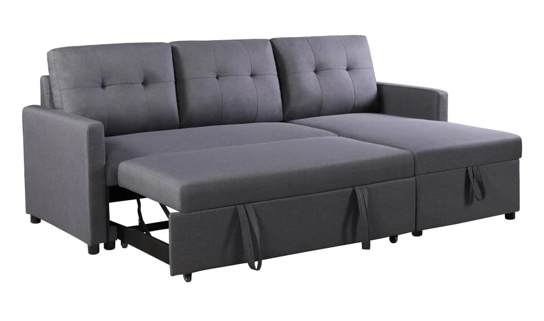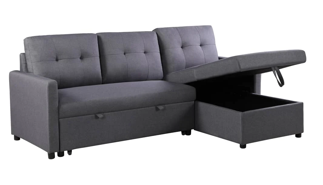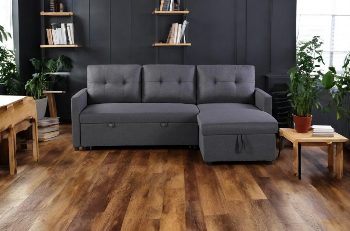 Erleben Sie die perfekte Kombination aus Funktionalität und Komfort mit unserem wendbaren Chaiselongue-Schlafsofa Kathe. Dank seines durchdachten Designs passt es sich jedem Raum an, da Sie die Chaiselongue ganz nach Wunsch links oder rechts montieren können. Ein besonderes Highlight ist die integrierte, geräumige Truhe unter der Liegefläche – ideal, um Decken, Kissen und andere Gegenstände ordentlich zu verstauen und so für ein aufgeräumtes Ambiente zu sorgen. Das Sofa verbindet modernes Design mit hochwertigen Materialien und ist somit die perfekte Lösung für entspannte Tage und erholsame Nächte. Eine ideale Wahl, um Stil und Praktikabilität in Ihrem Zuhause zu maximieren! Der Aufbau ist unkompliziert.